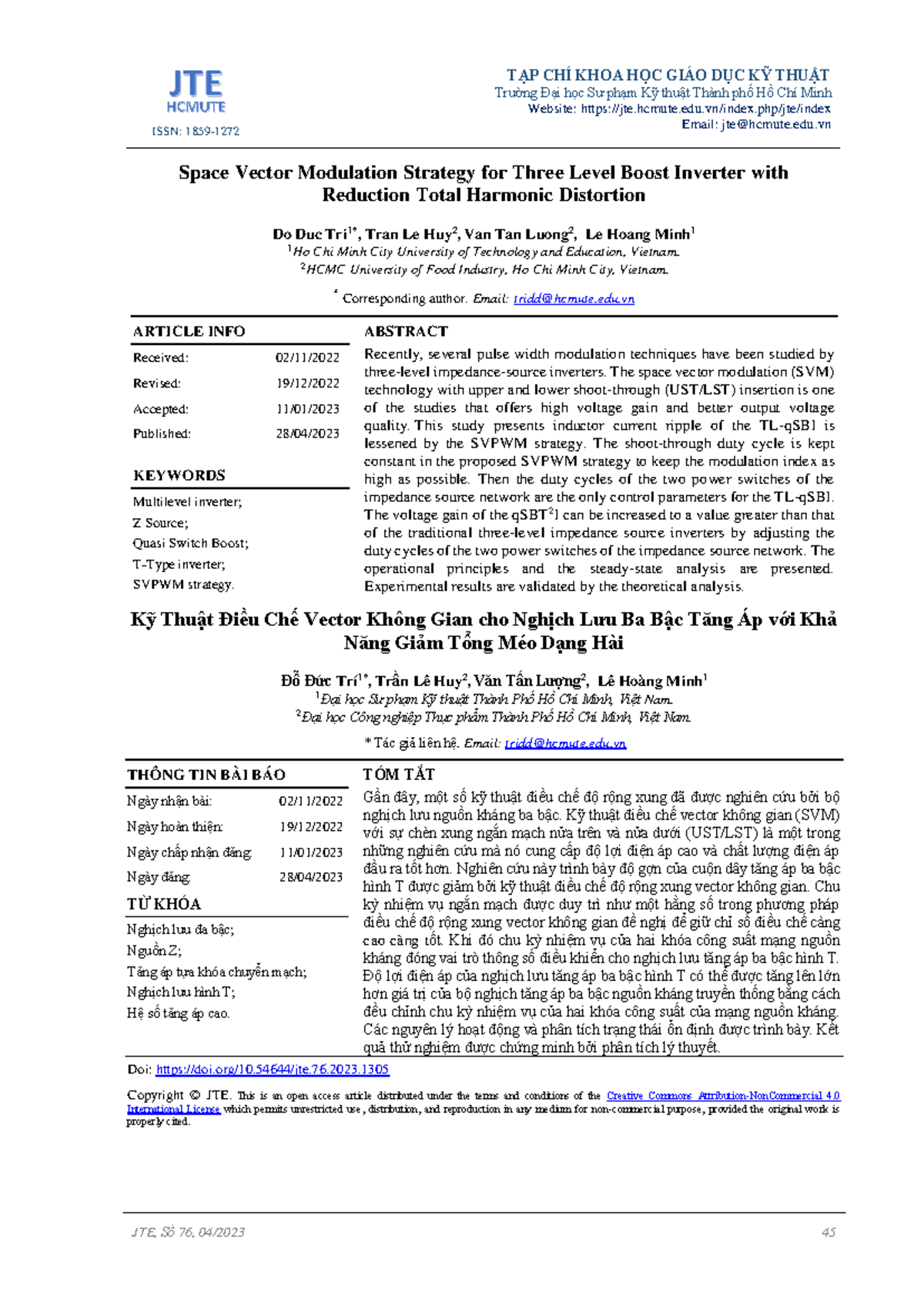 Kỹ Thuật Điều Chế Vector Không Gian cho Nghịch Lưu Ba Bậc Tăng Áp - Studocu