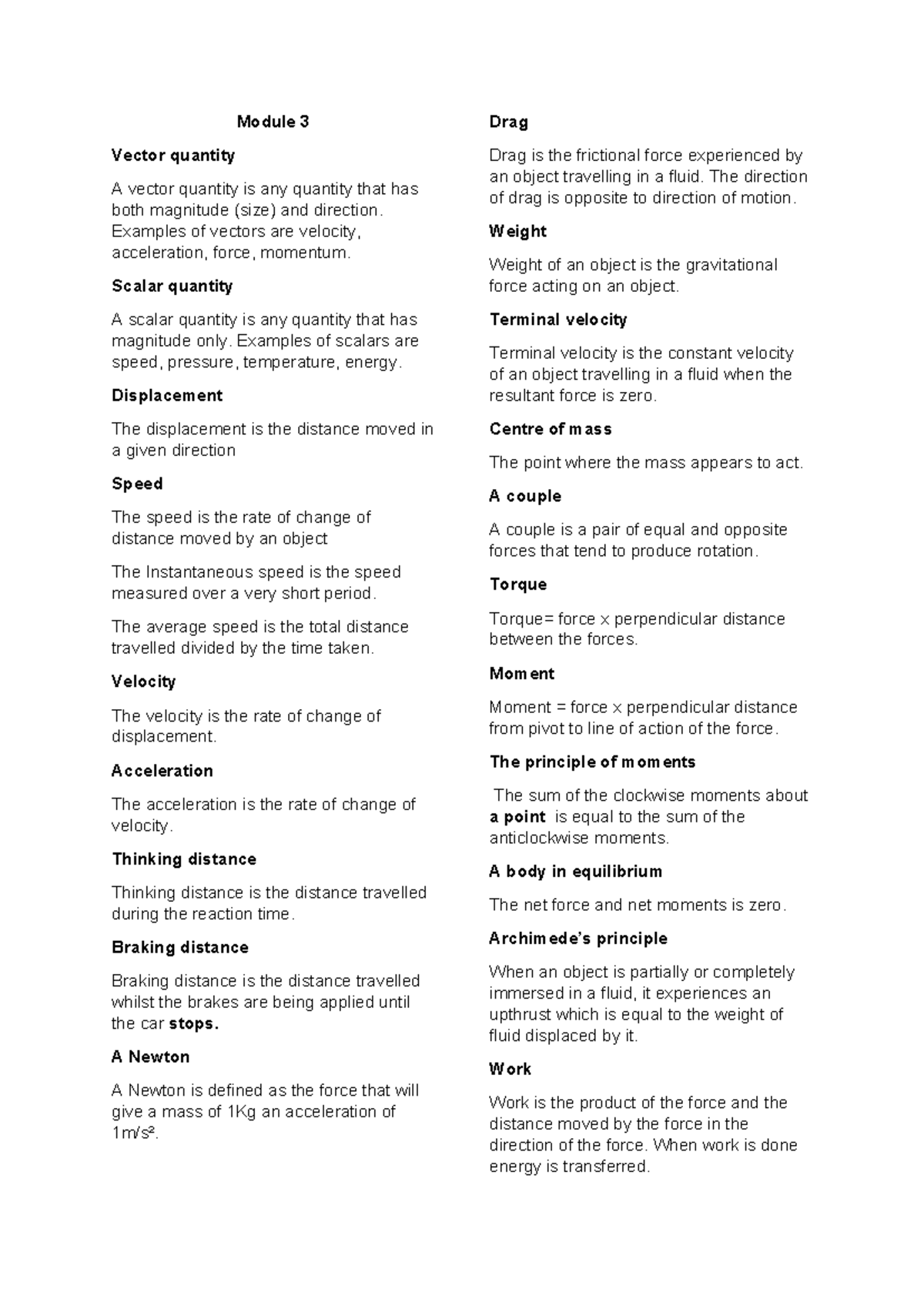 Physics Module 3 & 5 Key Terms: Vectors, Forces, Waves, and More - Studocu