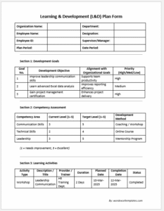 Learning And Development Training Plan Template