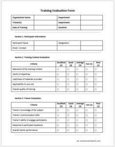 Training Evaluation Form Template | HR Training Feedback | Editable MS ...