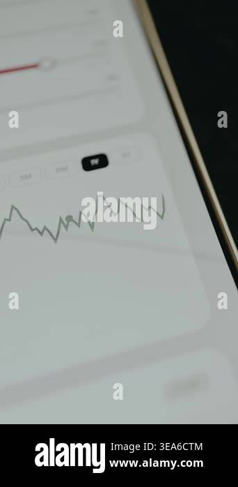 Line graph illustrating a one-year financial trend with a moving point ...