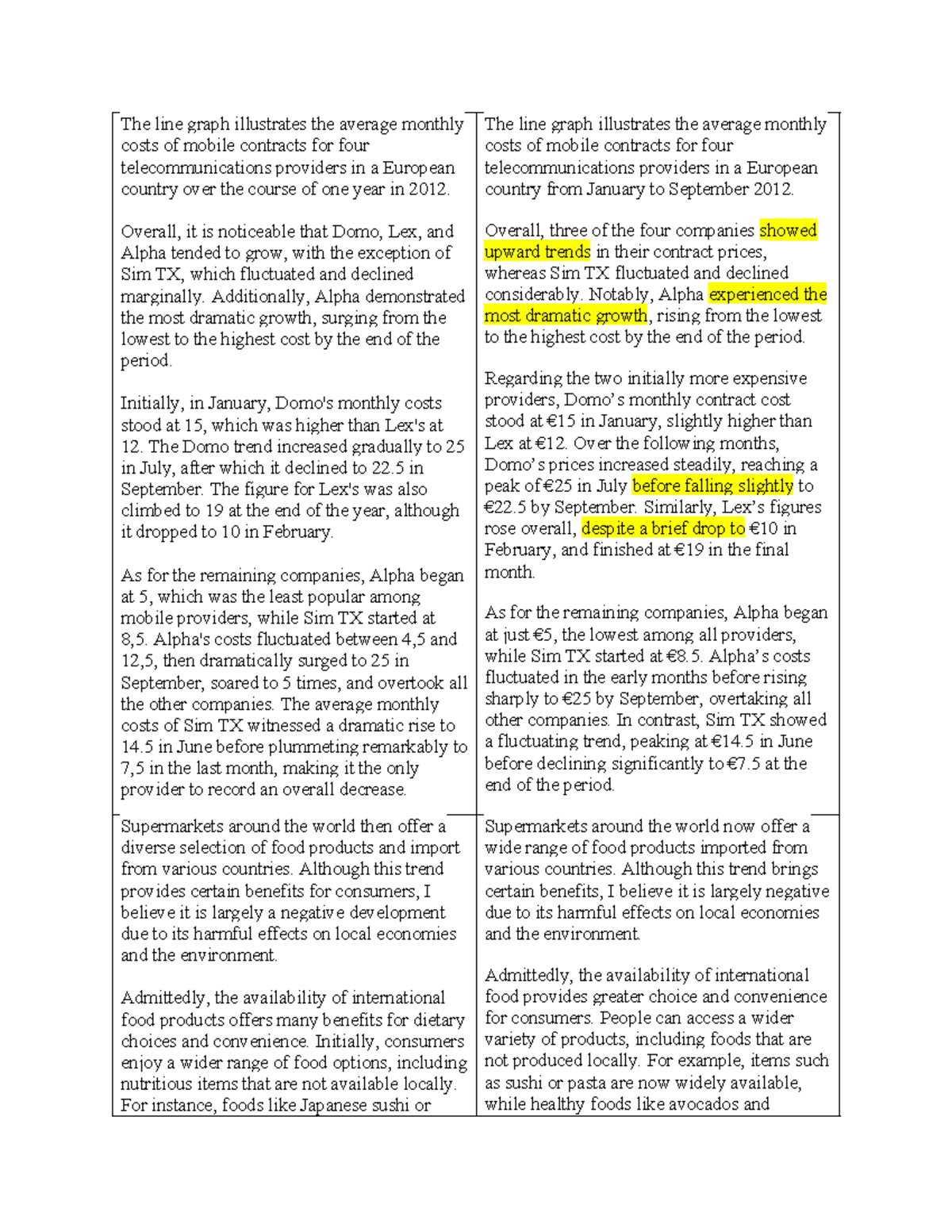 IELTS - Line Graph Analysis of Mobile Contract Costs (2012) - Studocu