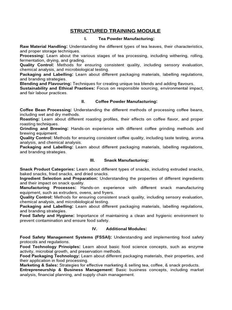 Structured Training Module | PDF | Coffee | Food Safety