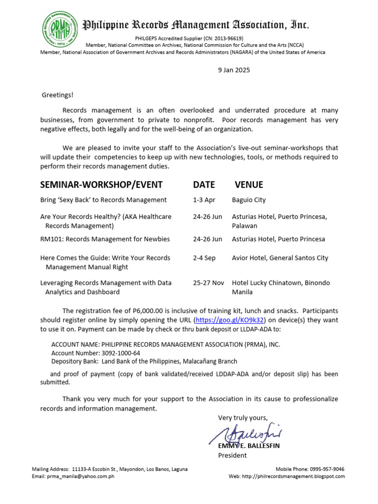 PRMA Invitation 2025 Training | PDF
