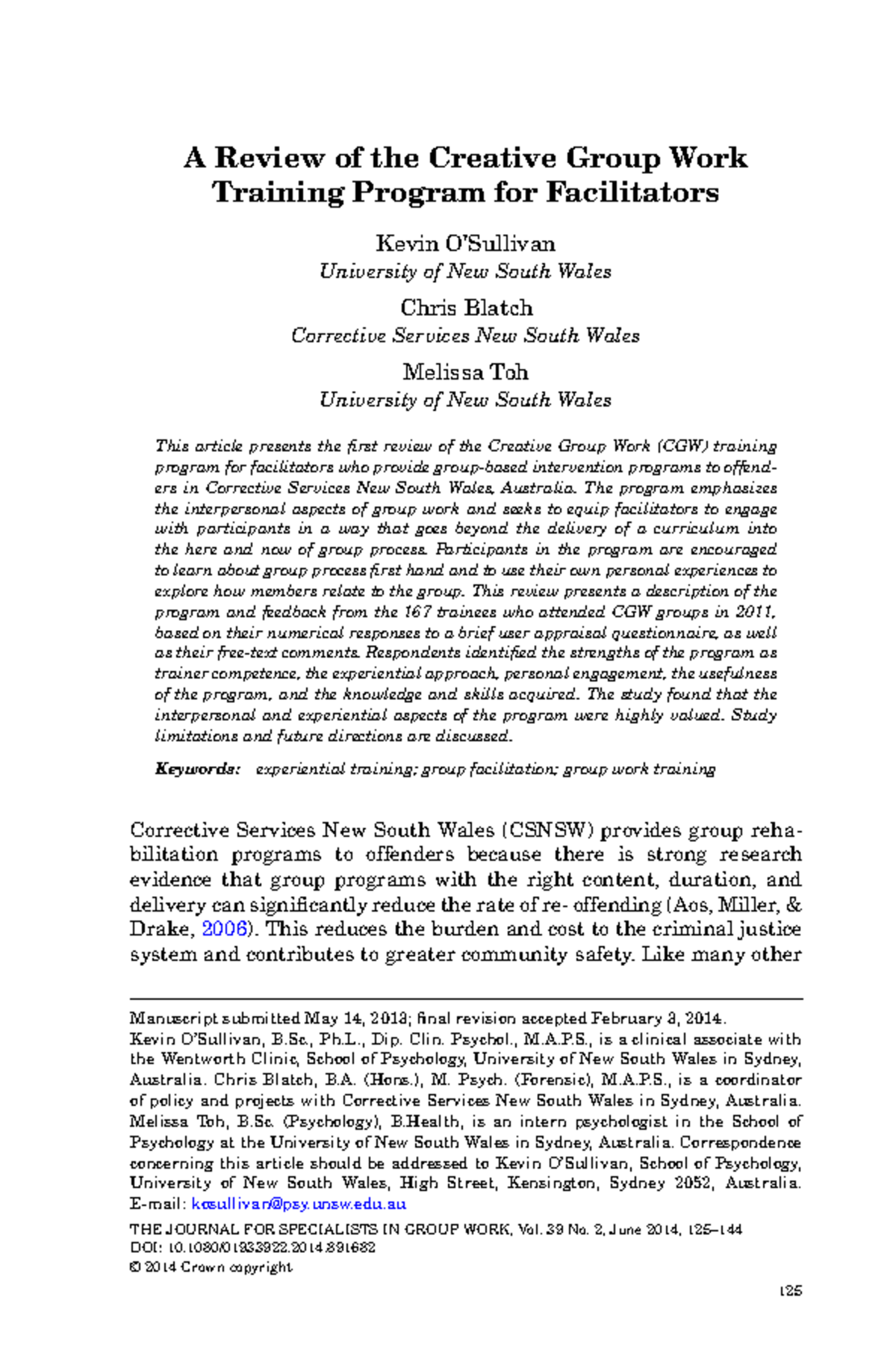 Creative Group Work Training Program Review for Facilitators (CSNSW ...