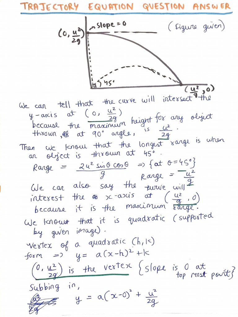 SOLUTION: Equation of trajectory examples - Studypool