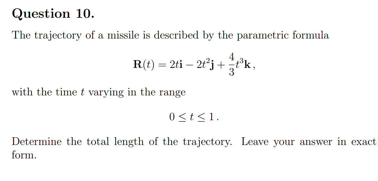 Solved Question 10. The trajectory of a missile is described | Chegg.com