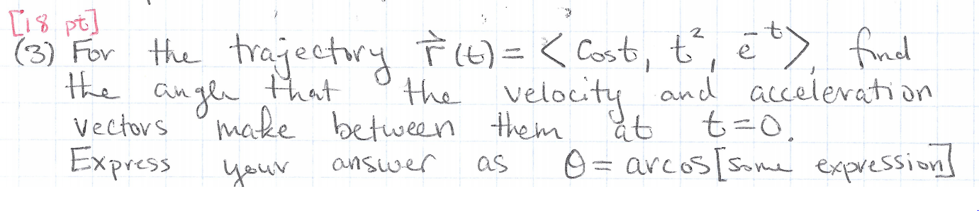 Solved [18 pt that (3) For the trajectory ↑ (t) = | Chegg.com