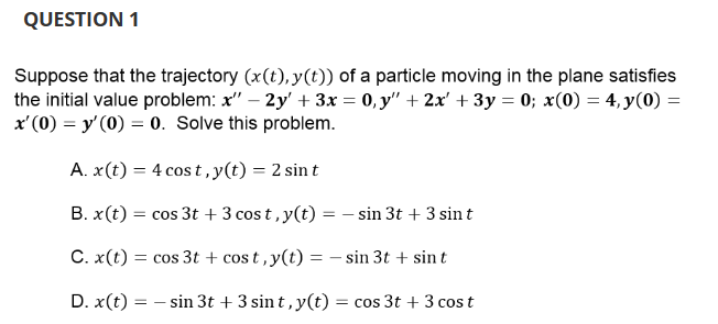 Solved QUESTION 1Suppose that the trajectory (x(t),y(t)) of | Chegg.com