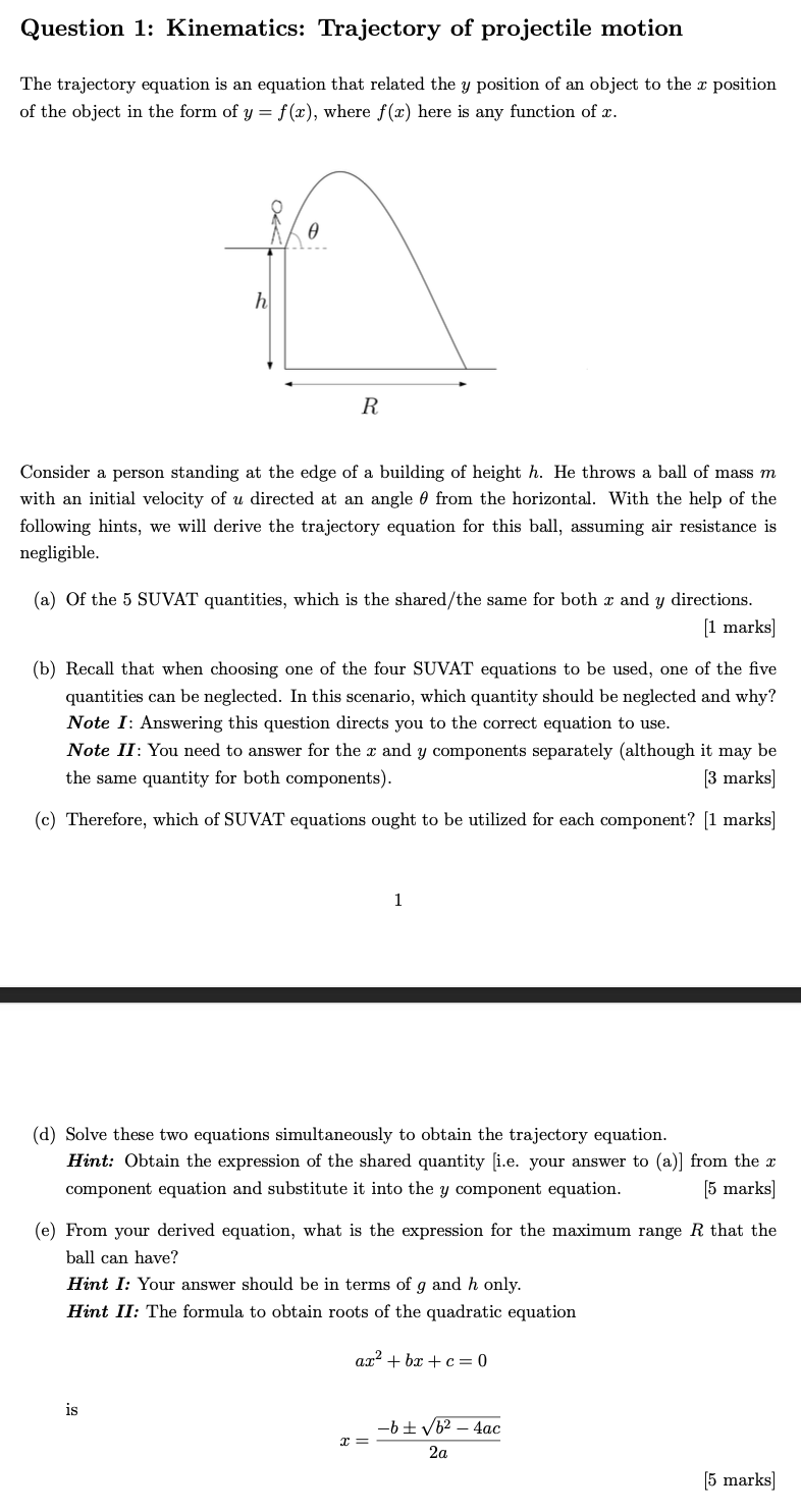 Solved Question 1: Kinematics: Trajectory of projectile | Chegg.com