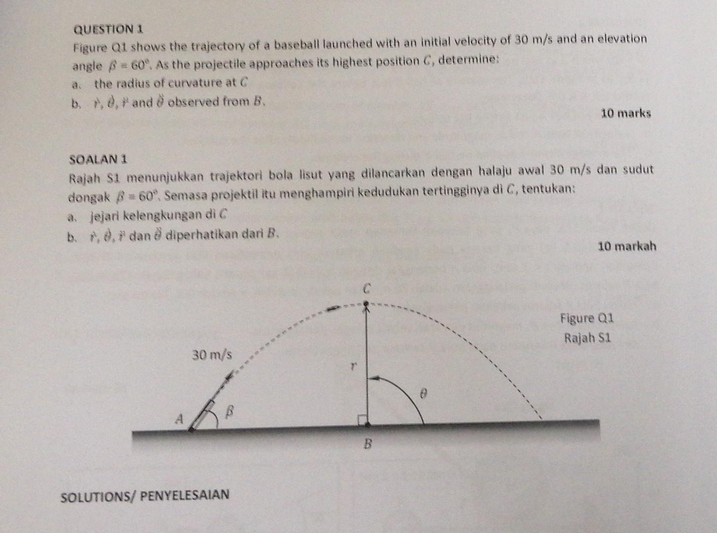 Solved QUESTION 1 Figure Q1 shows the trajectory of a | Chegg.com