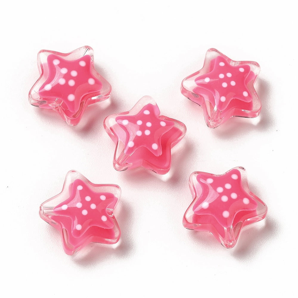 33pcs Transparent Glass Beads with Polka Dot Pattern Star Deep Pink ...