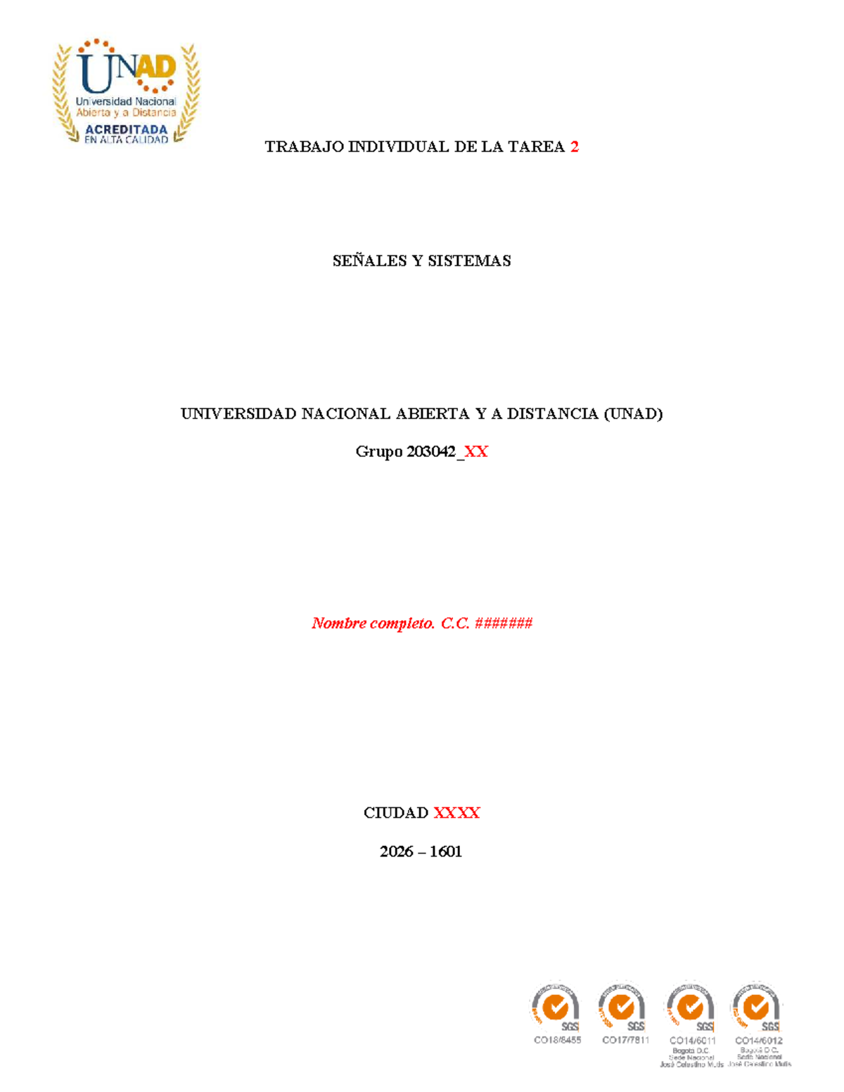 Tarea 2: Transformaciones de Señales Continuas y Discretas - UNAD 2026 ...
