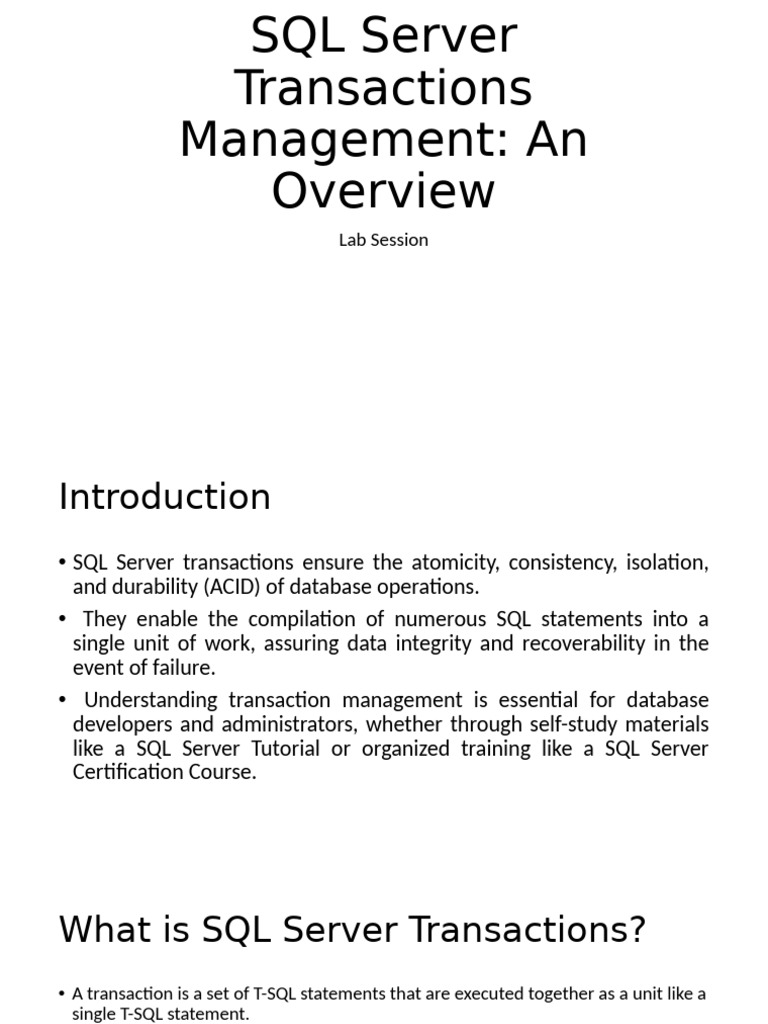 SQL Server Transaction Management | PPT