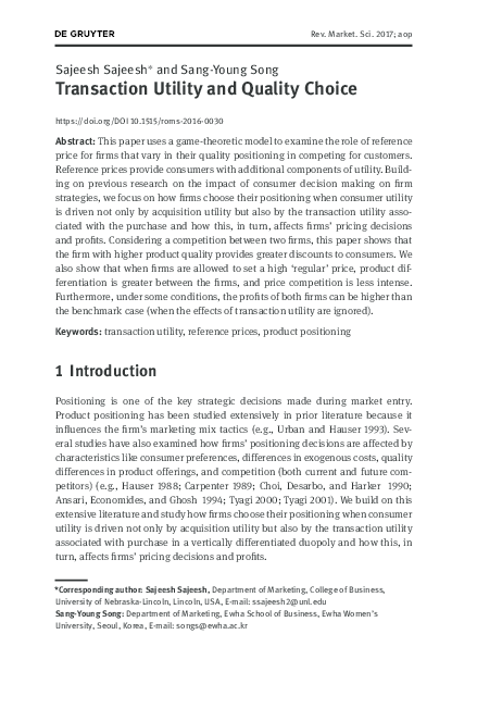 (PDF) Transaction Utility Effects When Quality is Uncertain