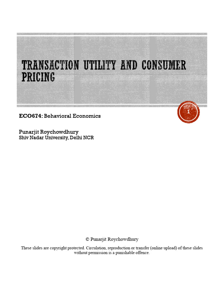 Lecture 33 Hedonic Framing, Acquisition Utility, and Transaction ...