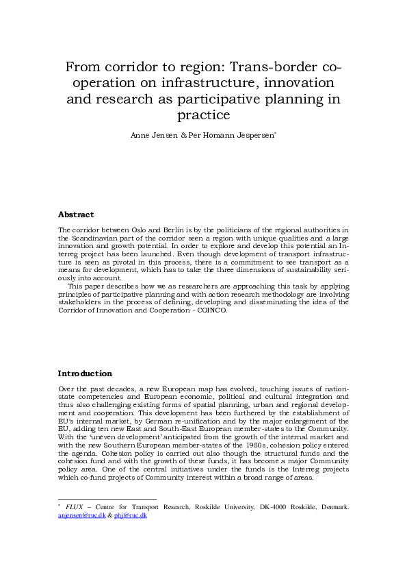 (PDF) From corridor to region : Trans-border co-operation on ...