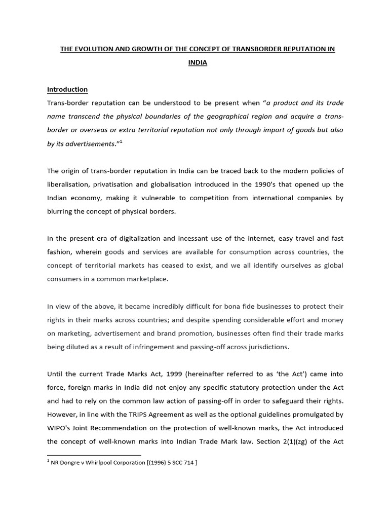Concept of Transborder Reputation: March 2022 | PDF | Trademark ...
