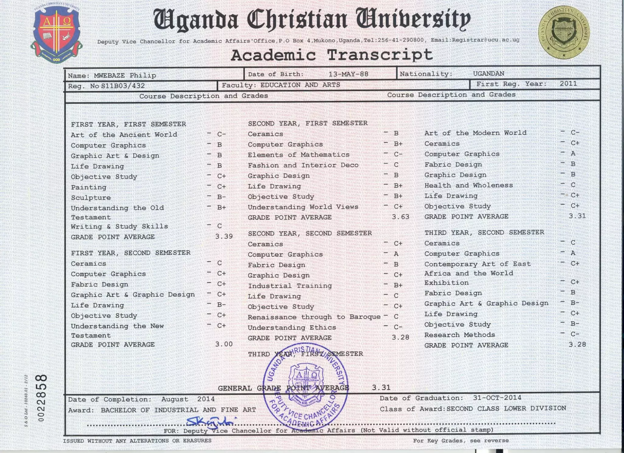 Academic Transcript Miiro Makerere University | PDF