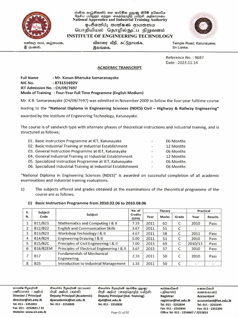 Academic Transcript 1 and 2 A | PDF