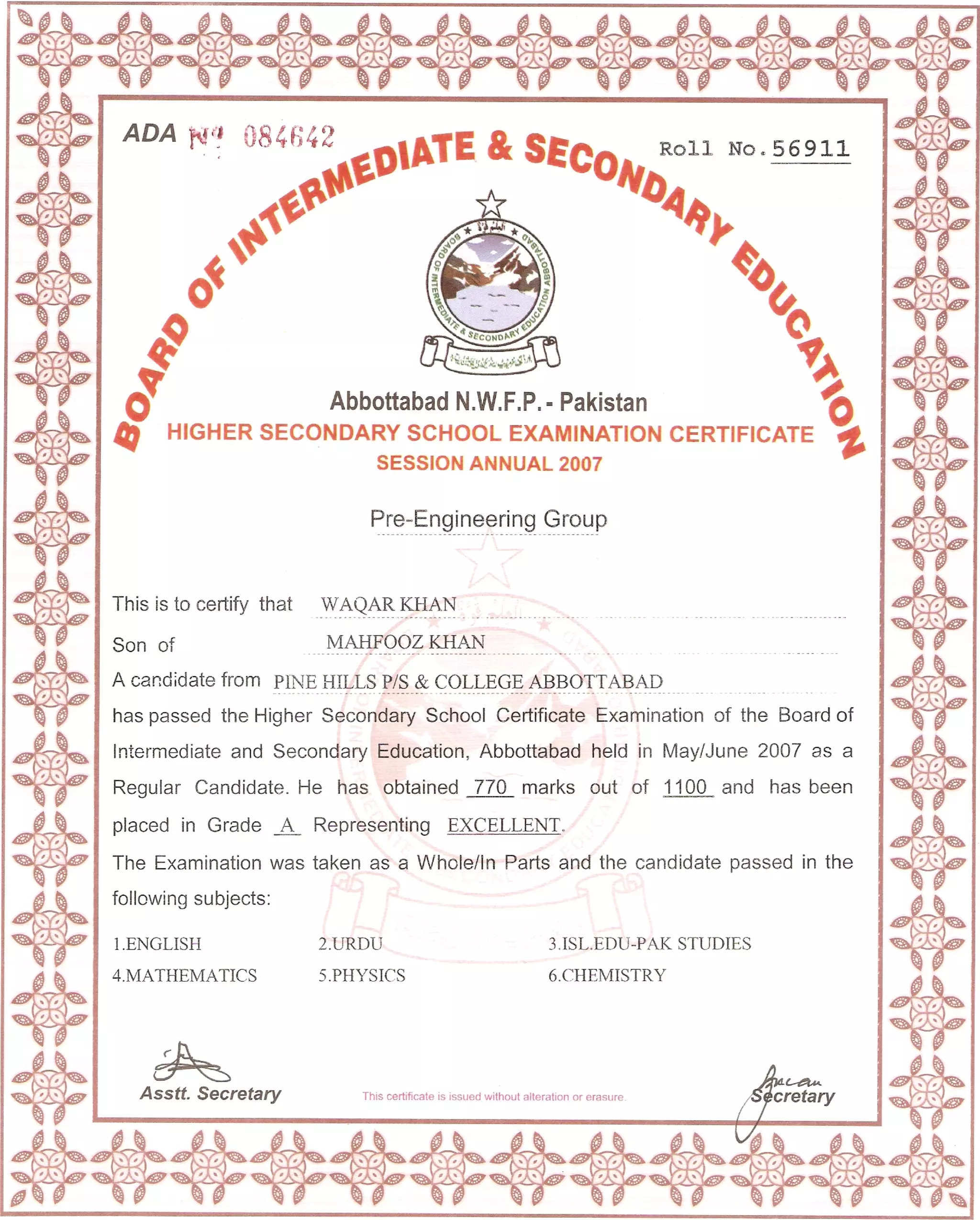 HSSC Certificate | PDF
