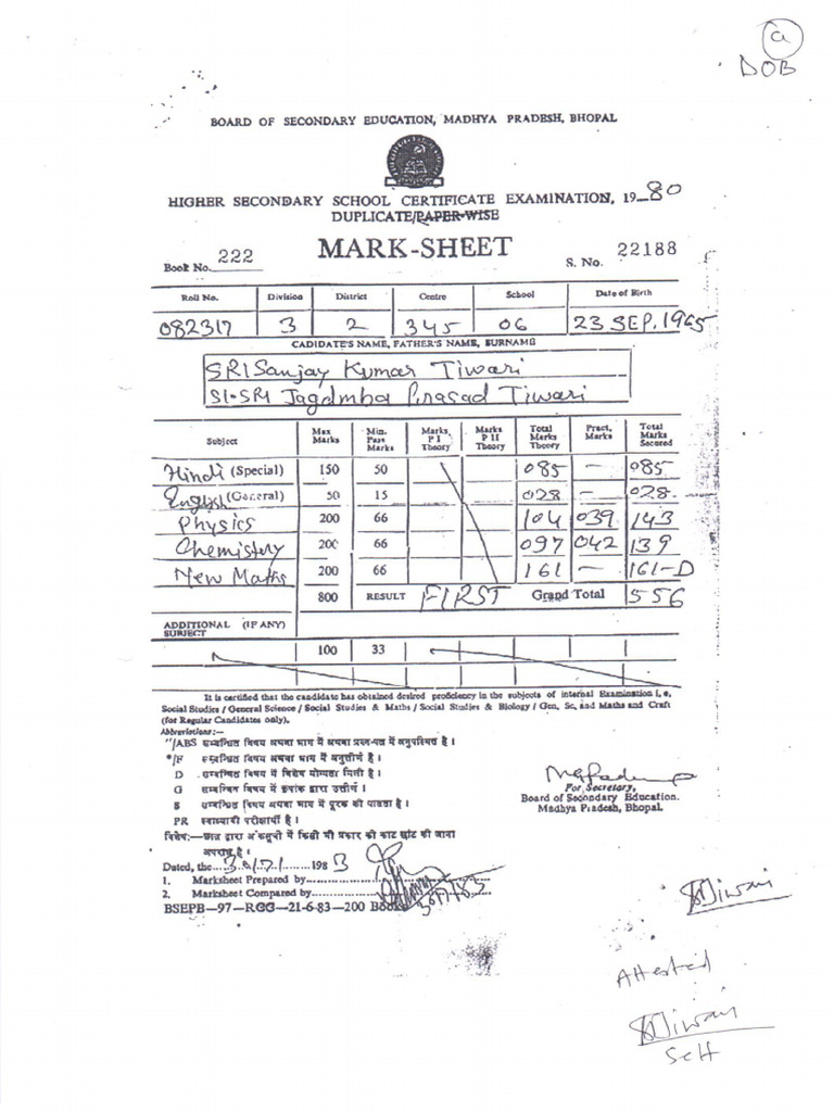 HSC Marksheet | PDF
