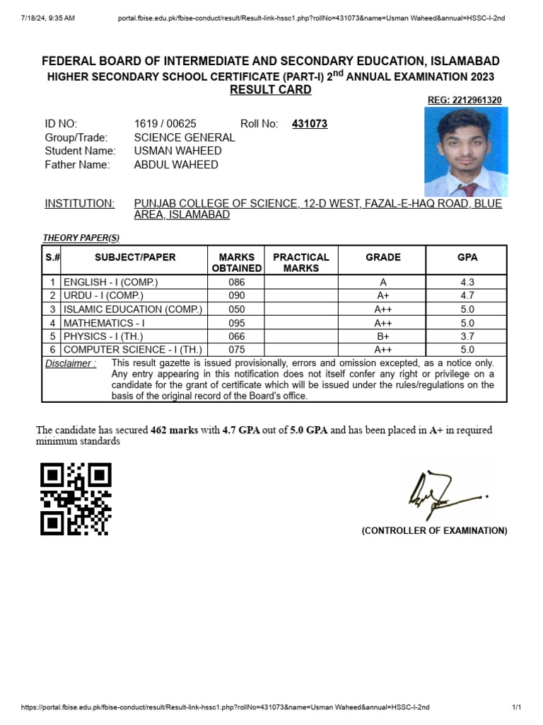 FBISE HSSC 1 and 2 results 2024 announced - Pakistan Observer