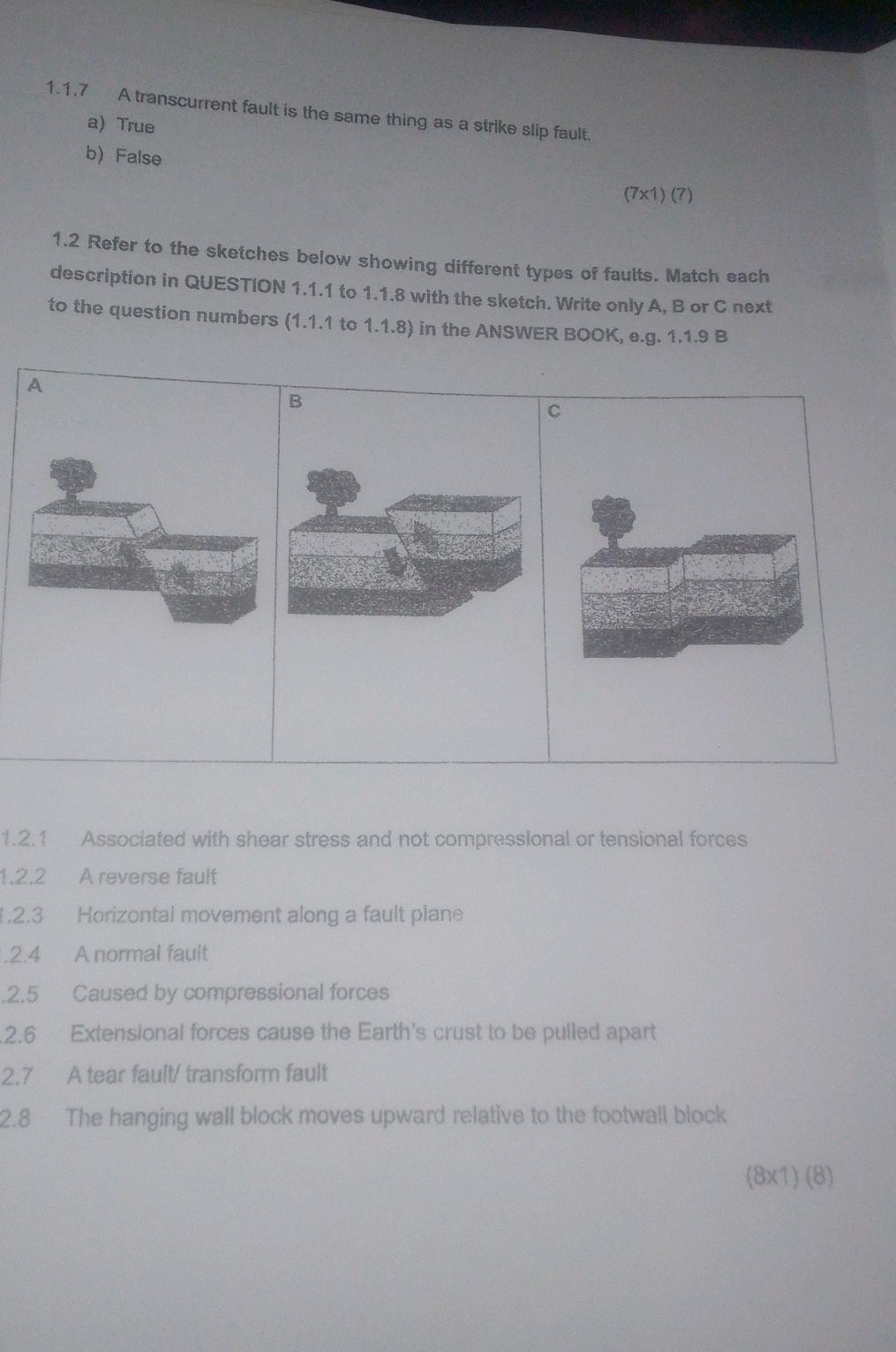 1.1.7 A transcurrent fault is the same thing | StudyX