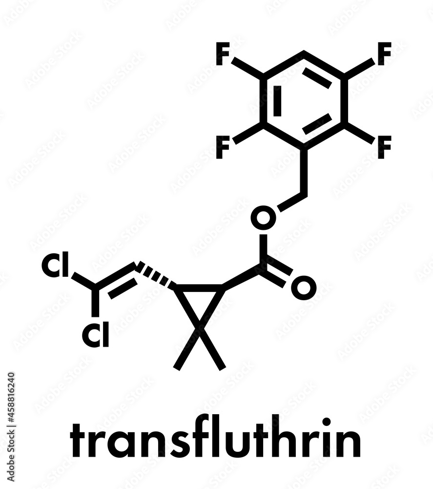 Transfluthrin insecticide molecule. Skeletal formula Stock Photo - Alamy