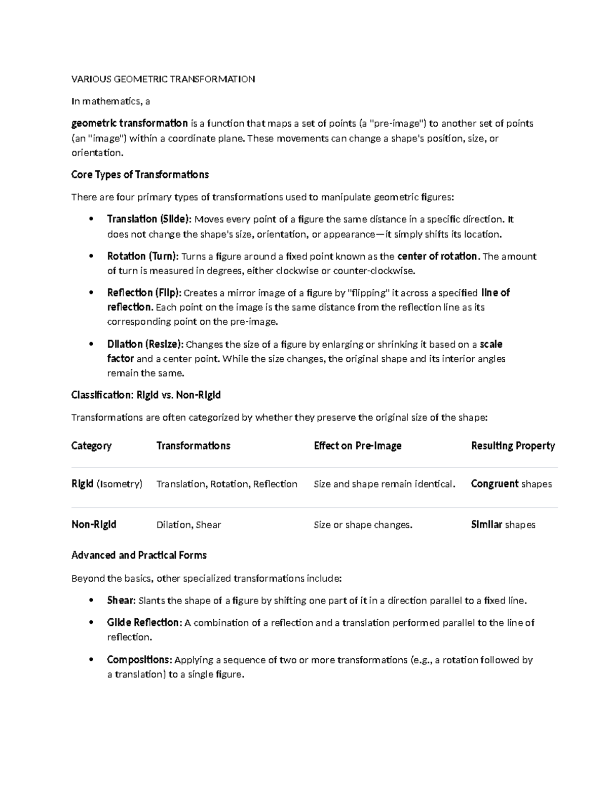 Geometric Transformations: Types and Applications in Math - Studocu