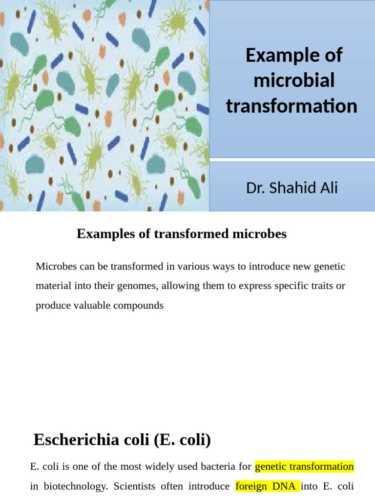 Microbial Transformation Examples in Biotechnology | PDF | Genetic ...