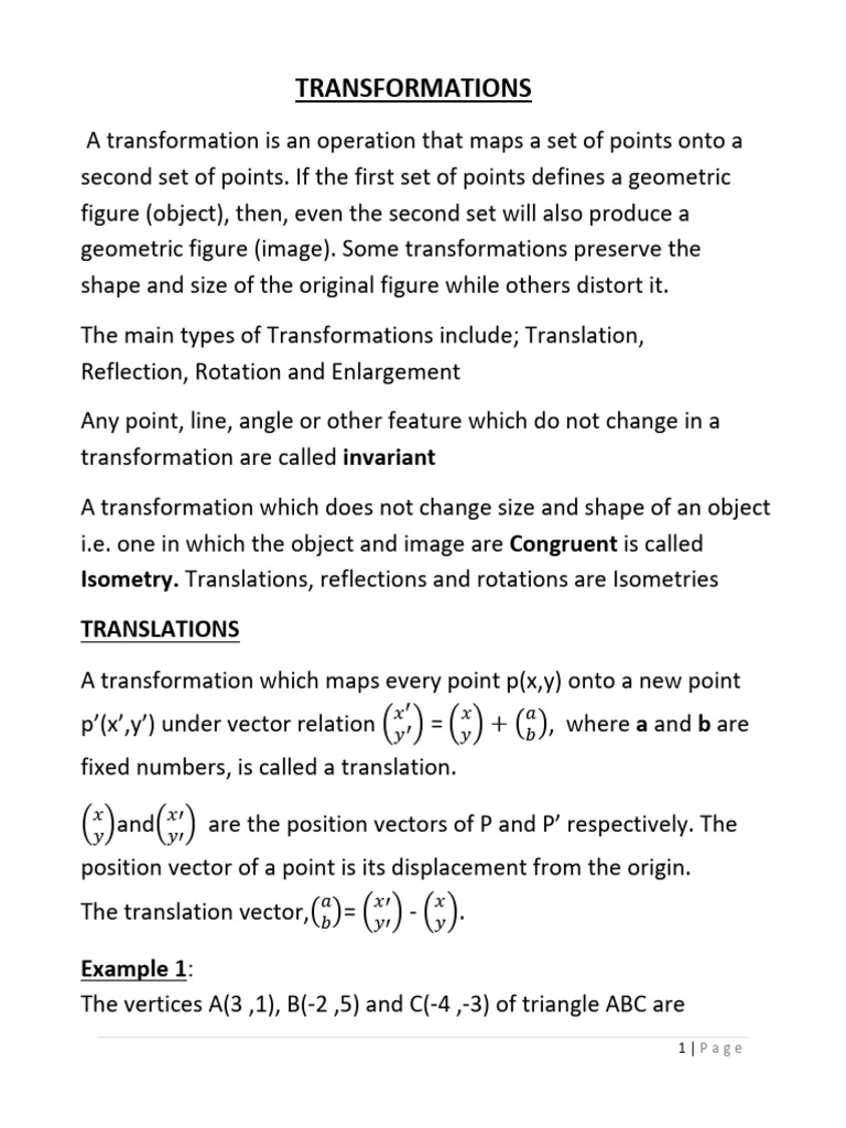 Part 3 - Transformation - Notes | PDF | Matrix (Mathematics ...