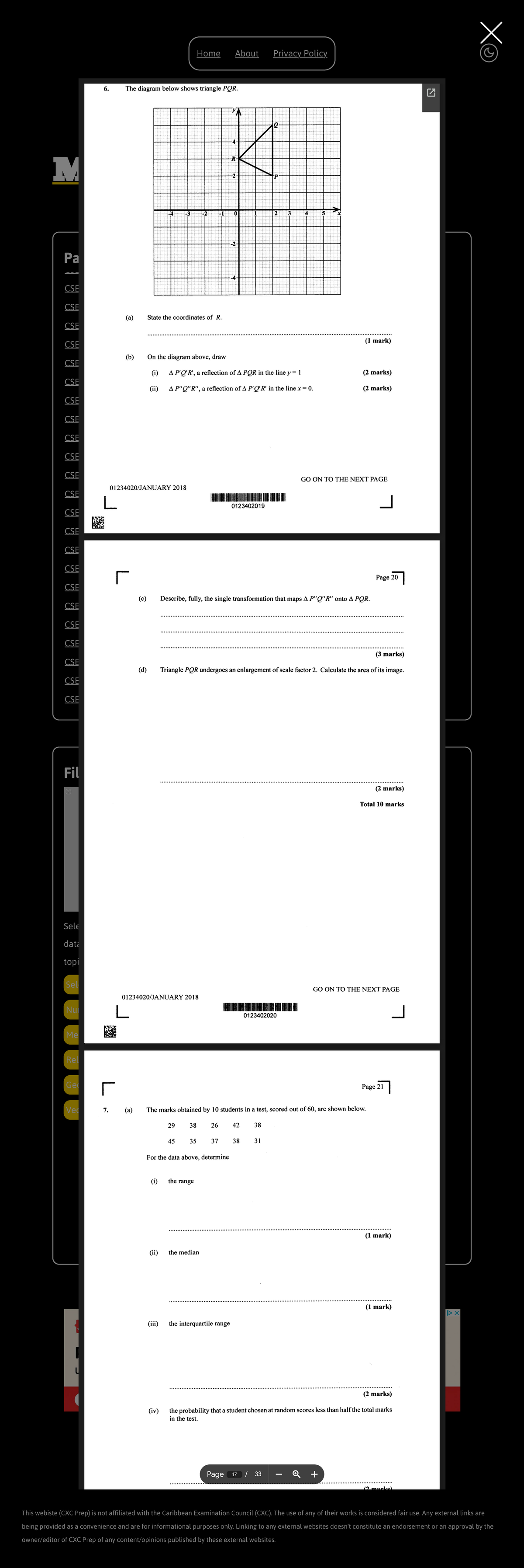 CSEC® Mathematics Past Papers - Transformations - Part A - Ans | PDF