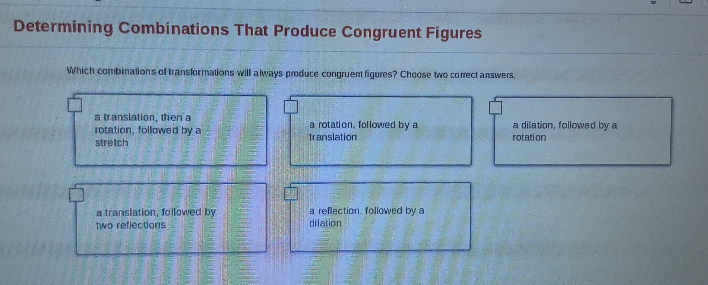 Solved: Determining Combinations That Produce Congruent Figures Which ...