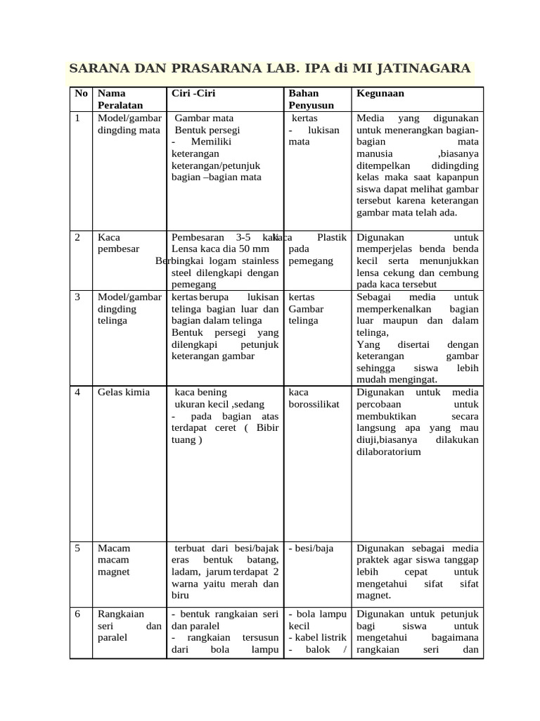Sarana Pendukung Lab Ipa | PDF