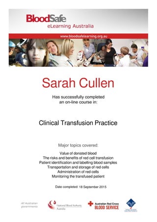 Certificate for Clinical Transfusion Practice [308678] | PDF