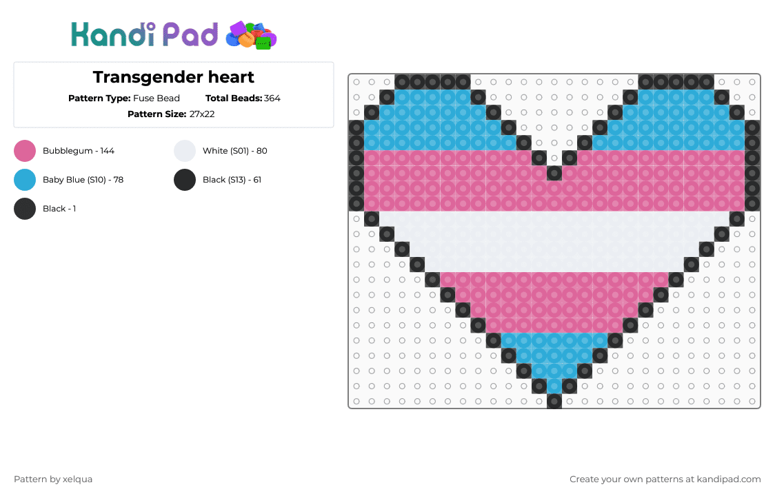 Transgender Heart Fuse Bead Pattern - Kandi Pad | Kandi Patterns, Fuse ...
