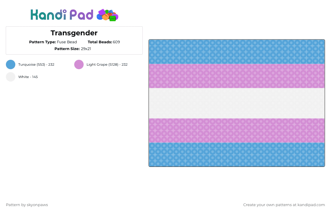 Transgender Single Pony Bead Pattern - Kandi Pad | Kandi Patterns, Fuse ...