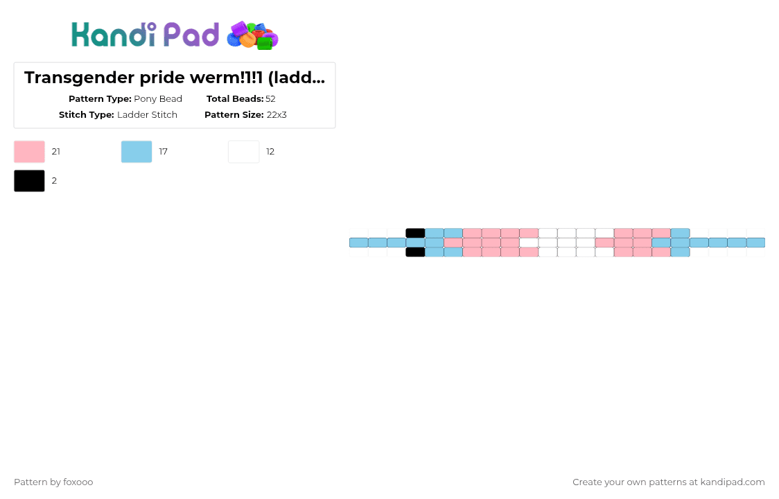 Transgender pride werm!1!1 (ladder stitch) Pony Bead Pattern - Kandi ...