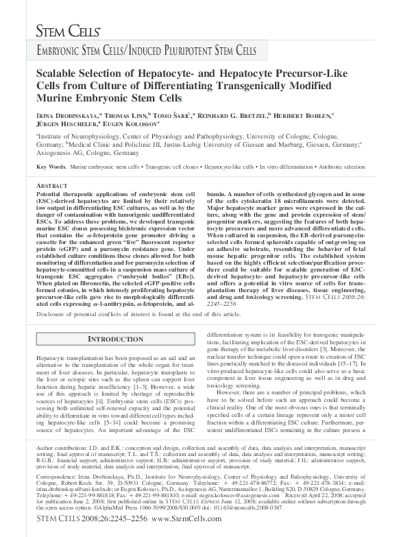 (PDF) Scalable Selection of Hepatocyte- and Hepatocyte Precursor-Like ...