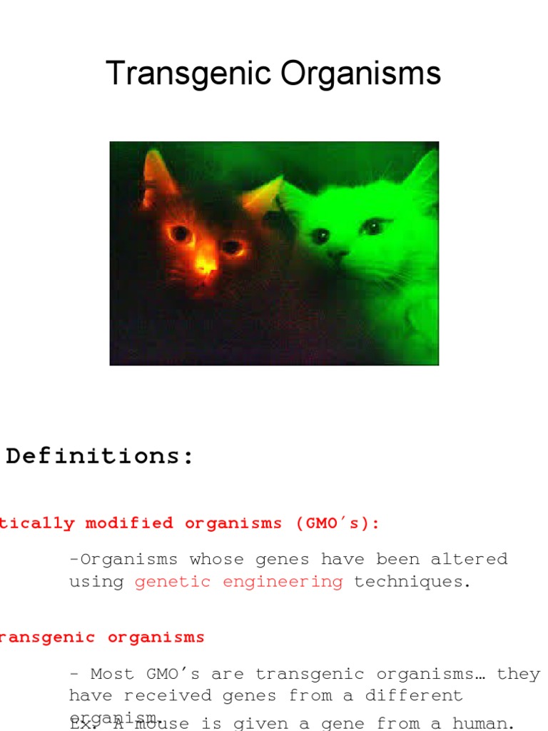 PPT - Genetically Modified Organisms (Transgenics) – “ The Right to ...