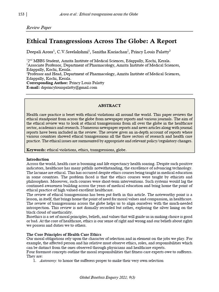 Ethical Transgressions Across The Globe A Report | PDF | Organ ...