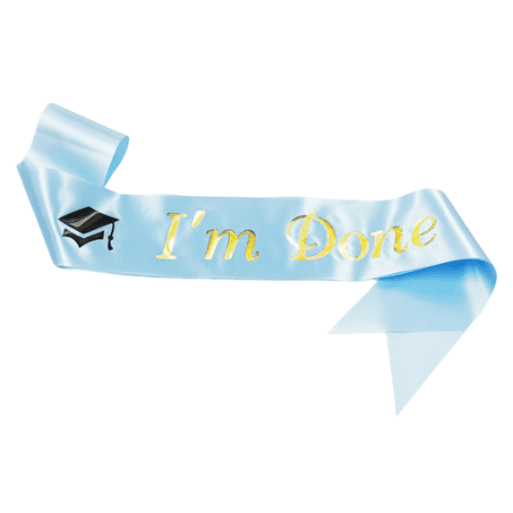1pcs Graduation Sash, 'I'm Done' Blue Satin with Gold Lettering, Grad ...