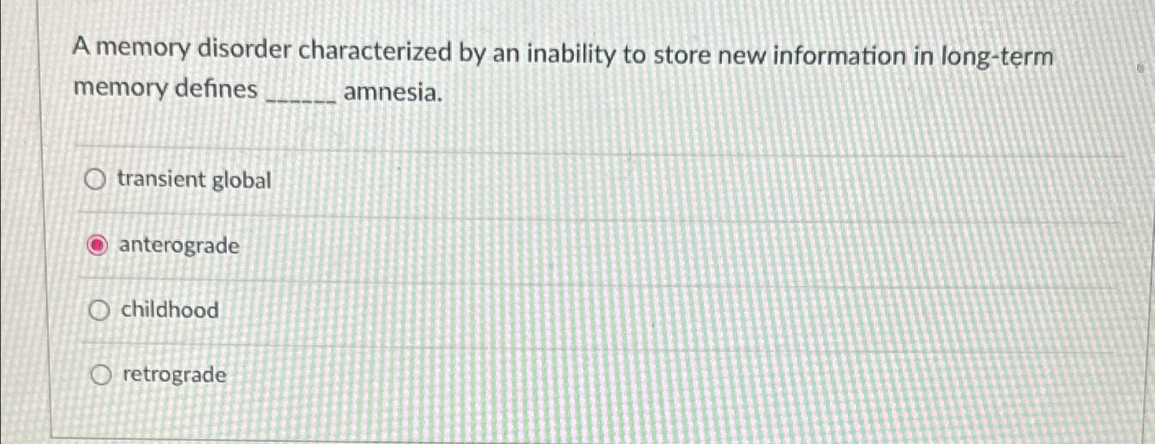 Solved A memory disorder characterized by an inability to | Chegg.com