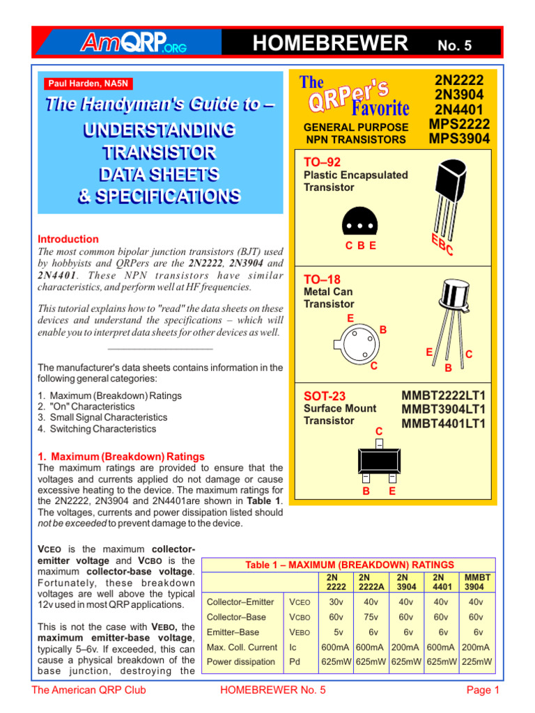 87 Basic Transistor l Transistor Specification Sheet (Datasheet) Part 1 ...
