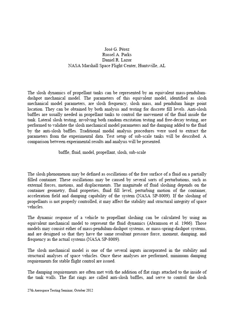 Figure 2 from Nonlinear Slosh Damping Testing and Analysis for Launch ...