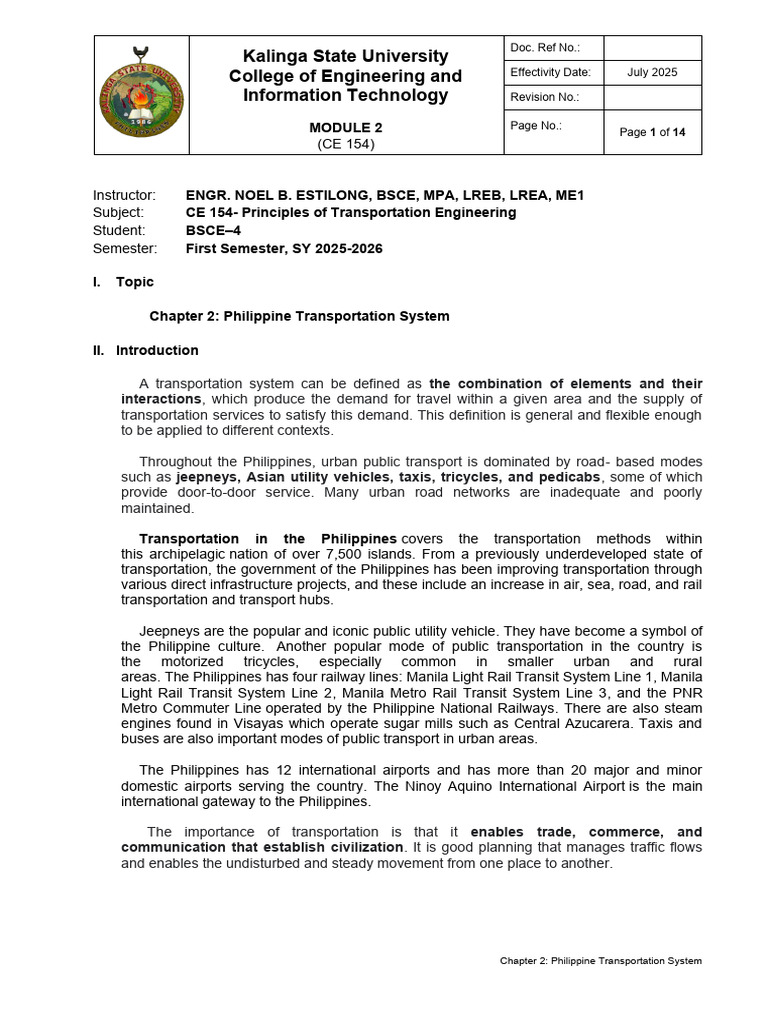 Module 2 (Transpo) - Philippine Transportation System | PDF | Transport ...