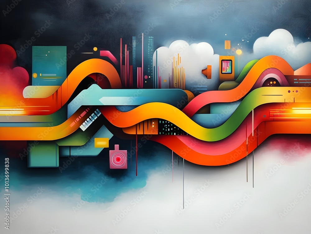Abstract expressionist interpretation of a smart city s interconnected ...