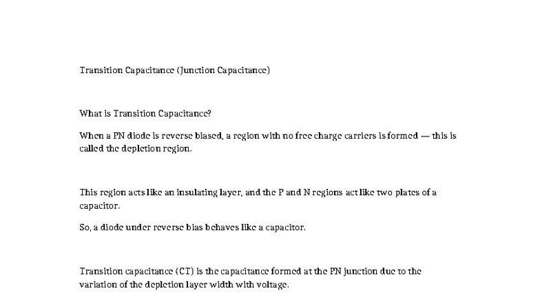 Transition Capacitance in PN Diodes: Understanding CT Dynamics - Studocu