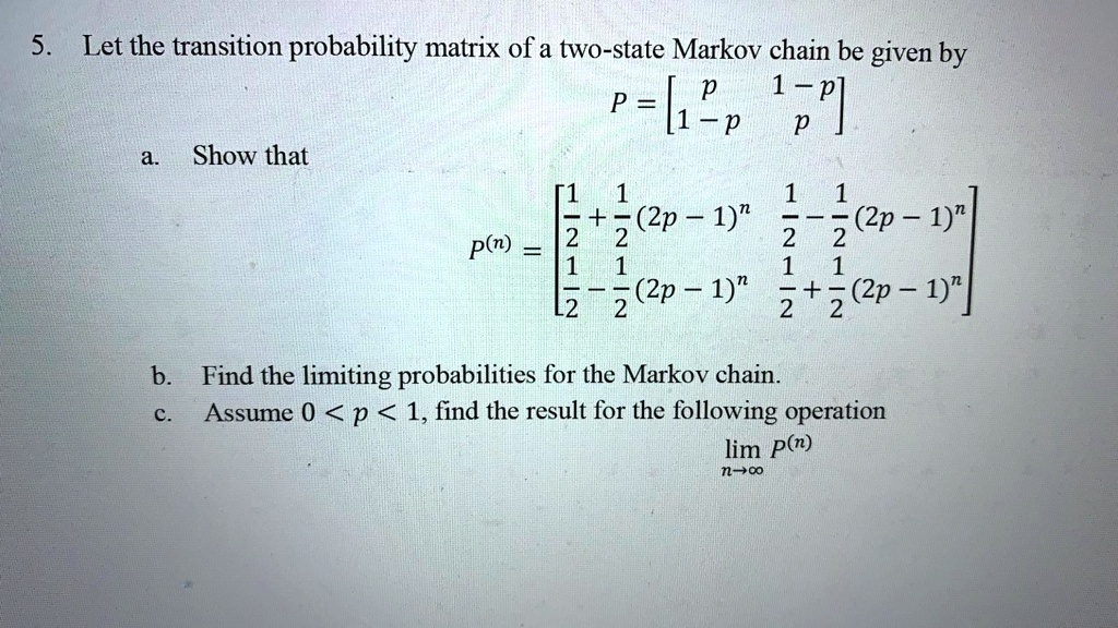 SOLVED: For the attached transition probability matrix for a Markov ...